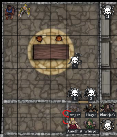 As the prisoners are talking, Amethist and Whisper begin searching the room, while Angar searches the hobgoblin bodies.