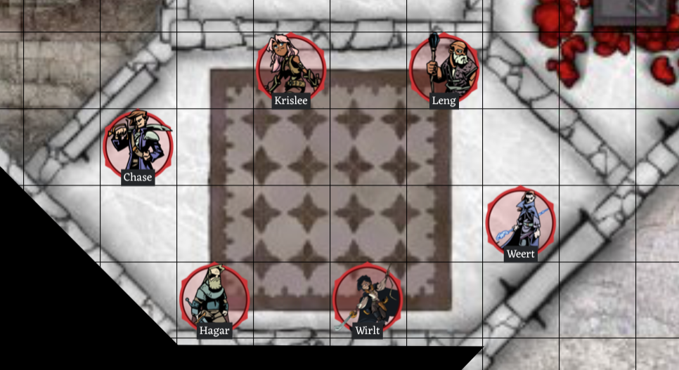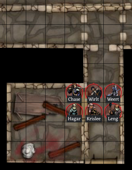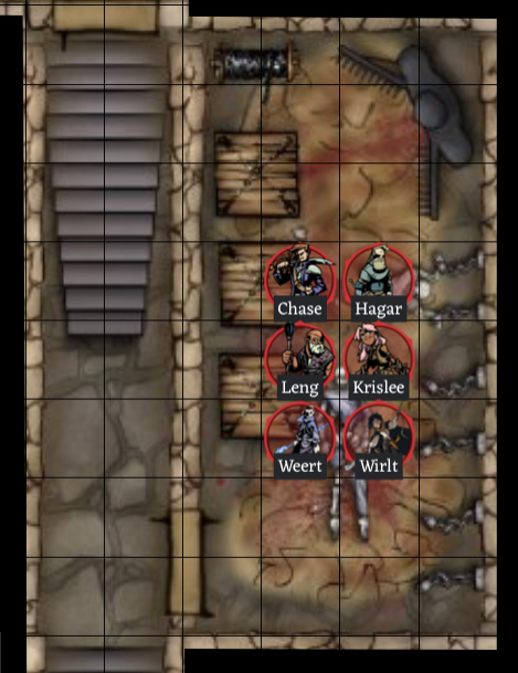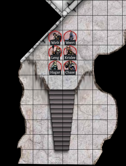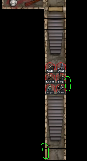 “Looks like Weert took a pretty rough hit. Leng, anything you can do to help? I’ll guard the door until we are all ready to go.” Chase takes up a protective stance in front of the door. “After we rest up I’d love to see what is behind door number two.” Indicating the door further down the stairs.